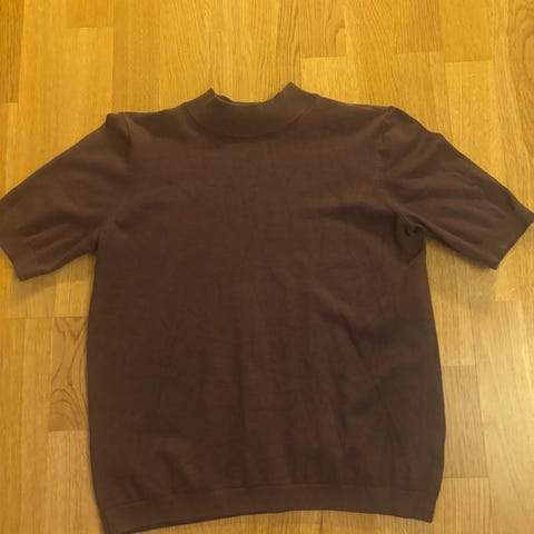 Klassisk tröja (ej t-shirt). Köpt på gamla tidens NK.Synliga veck beror på att den varit nerpackad och att den är i bomull.Jag tycker nog att den är mer som storlek medium .