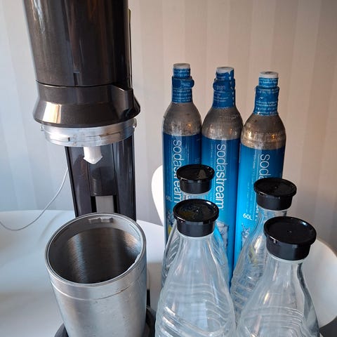 Sodastream Source i bra skick säljes, då vi fått en "lyxigare" modell i present. Två helt nya flaskor på 0,5 liter, medföljer. Flaskorna kan diskas i maskin. Även en kolsyreflaska (normal modell, som kan bytas nästan var som helst och är ofta lite billigare än den nyare Quick Connect) med ca 20 % kolsyra kvar medföljer.