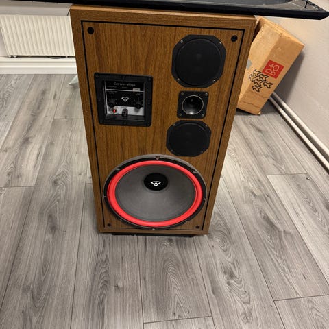 Cerwin-Vega V-10F golvhögtalare. Äkta och inköpta av mig, så bara jag som haft dem. Funkar utmärkt och är i gott skick. Högtalartyget är helt men kan behöva rengöras/tvättas. Annars helt perfekta.