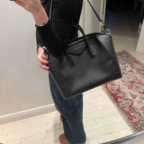 Säljer min Givenchy Antigona handväska i storlek Medium. Färg mörkbrun (glansig, ej matt). En stilren, lyxig och tidlös modell som passar perfekt för vardag och arbete. Stabil form, dubbla handtag och avtagbar axelrem. Mycket rymlig med plats för dator, kalender och övriga vardagsprylar.