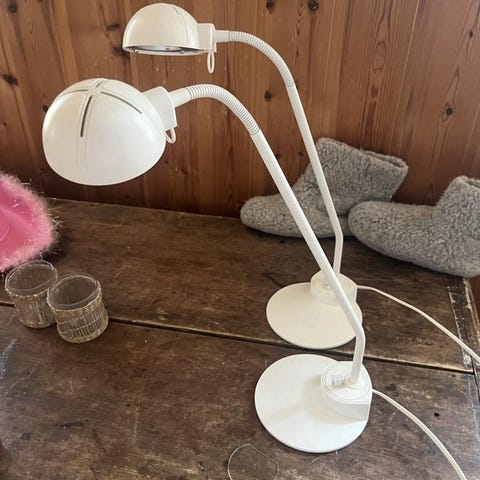 Skön bordslampa i genomskinlig blå plast från IKEA. En klassiker som många av oss växte upp med.