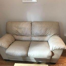 Vit 3-sits skinnsoffa med ben i rostfri metall. Soffan är i fint skick.
