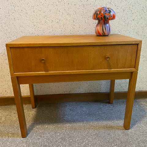 Jätte fin och rar ev 50 tals teak sängbord med svarta ben och mässing