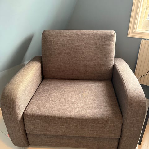 En liten bäddfåtölj som passar bra till barnrummet. Bäddstorlek 60*180.