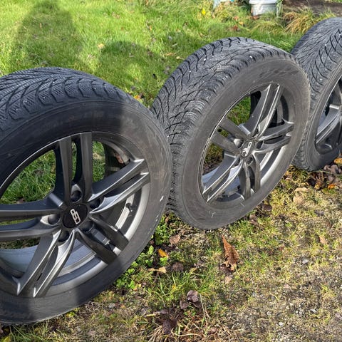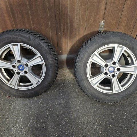 Har 4 st Alu fälgar som kommer från en Volkswagen golf 2018 med tillhörande dubbdäck som i sin tur är slitna men två av de kan användas de andra kast ..