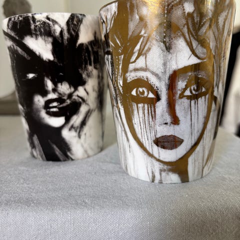 Gynning Design bricka med konstnärligt motiv i svart-vit. Vit undersida med Gynning Design logotyp.