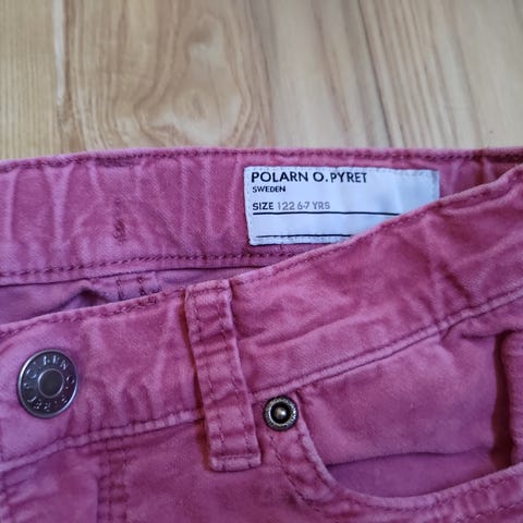 Polarn O. Pyret byxor i svart färg, storlek 122, unisex. Tillverkade i polyestermaterial.. strl 122/128
