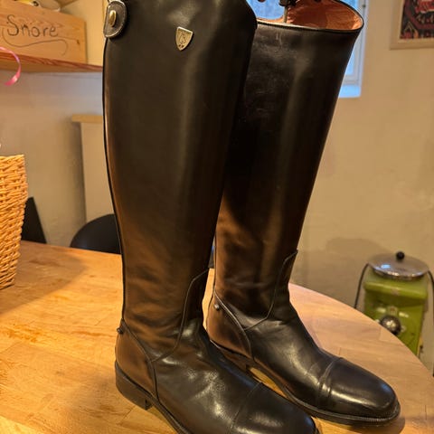 Läderridstövel Arrezzo från CRW. Strl 42 Smal modell. Stövlarna är knähöga med dragkedja med resår på insidan och har slitstarka gummisulor med mönster för grepp. I mycket gott skick endast använda en termin på ridskola.