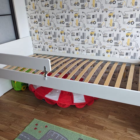 Barnsäng från IKEA med utdragbar underdel som kan användas som en extra säng, samt förvaringslådor.