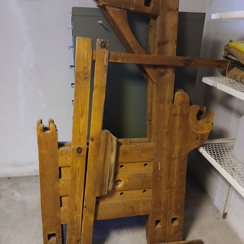 En mindre vävstol, kan vävas trasmattor på den mm.