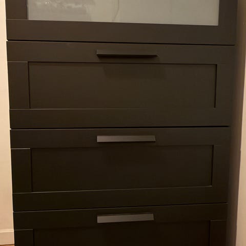 Byrå IKEA BRIMNES, 3 lådor, röd, vit/frostat glas