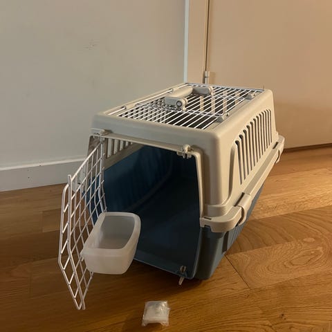 IATA godkänd transportbur. Mått L: 90 B: 60 H: 68. Använd 1 g under en biltur, stått i förrådet ca 2 år. Finns att hämta i Stureby, Stockholm.