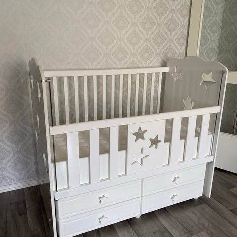 En superfin söt liten babysäng i form av en korg på en vitmålad metallställning med sängkappa fasthäftad i botten. Nyköpt madrass. (OBS sängmobil och sakerna på första bilden ingår ej utan bara visning på hur vi haft det)