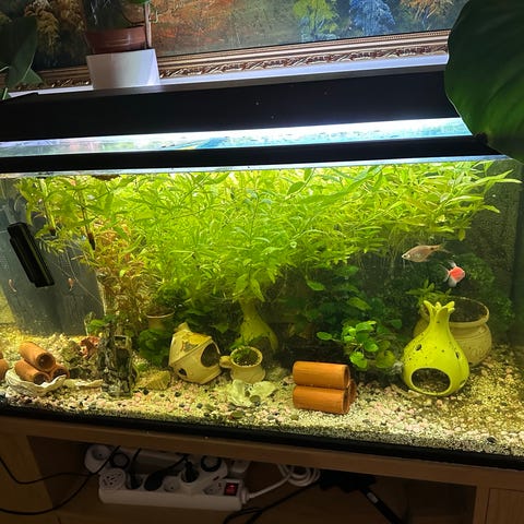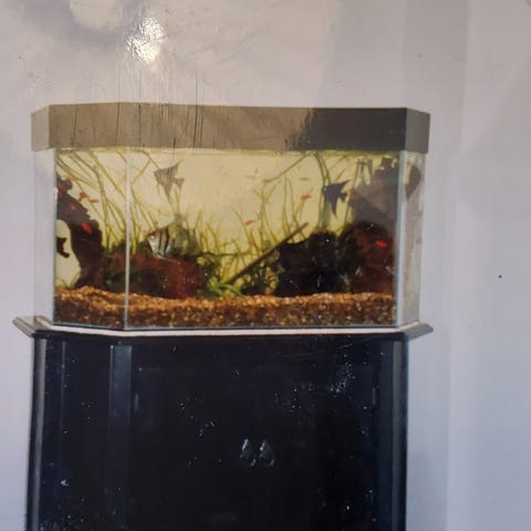 Akvarium med belysning och dekor