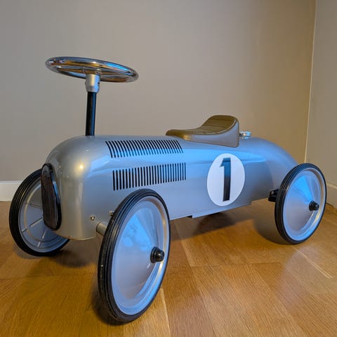 Det fungerar jättebra, tillverkade i metal med en röst fläck nära hjulet.
