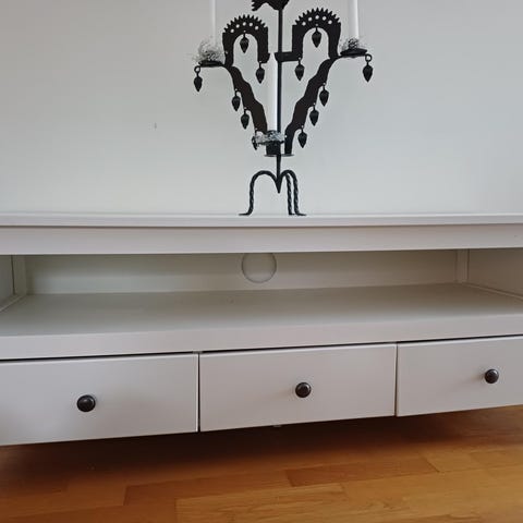 En tv-bänk med förvaring skänks bort.