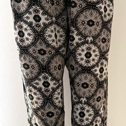 Svart nylonstrumpbyxa med guldskimrande rand på framsidan. 50 den. Oanvänd i förpackning.
