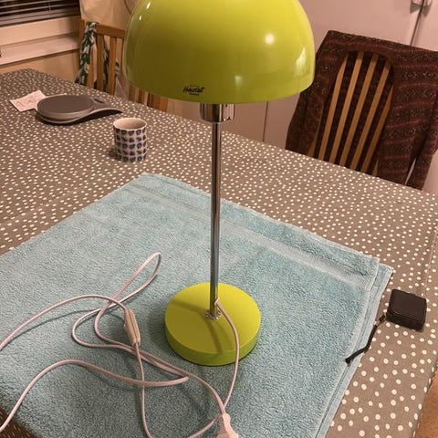 Vintage bordslampa tillverkad i marmor och mässing. Lampan har en rund bas med dekorativa mönster och en sladd med strömbrytare. Passar som belysning på bord eller skrivbord. Höjd 33cm.