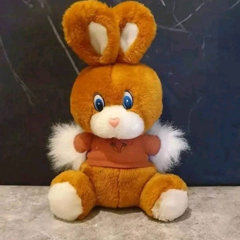 Vintage från år 1990 Teddykompaniet mjukisdjur nallebjörn i brun färg. Mjukisdjuret är tillverkat av mjukt material maskin tvätt och dragfastaögon och är lämpligt som leksak för barn.