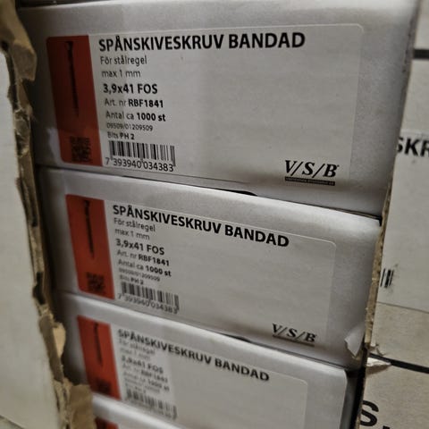 Det finns totalt 8 frp, varje frp innehåller 500 skruv.