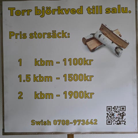 Pannved längd 45 cm i 1,5 m3 säck, 800:-/m3.