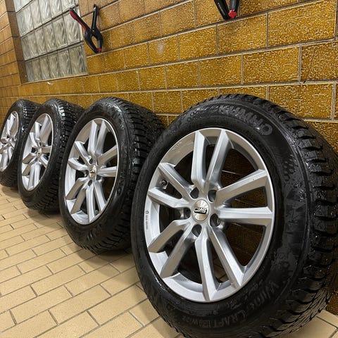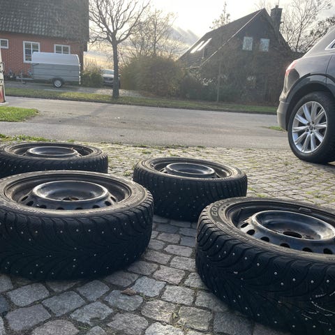 Har några uppsättningar av kompletta hjul till salu med dubb eller sommar däck på men även ett sett med endast aluminium fäljar.