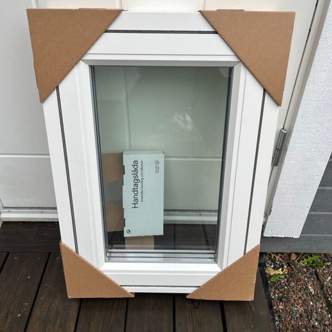 Mockfjärds kvalitetsfönster. Tillverkat 201304. Monterats under 2014. Aluminum. Hämtas Riddarvägen Österskär . Karm 118*118. Fast fönster.