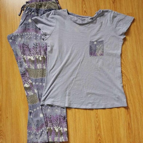 Söt rosa blommig pyjamas M set 3 delar sleepwear pink flowers