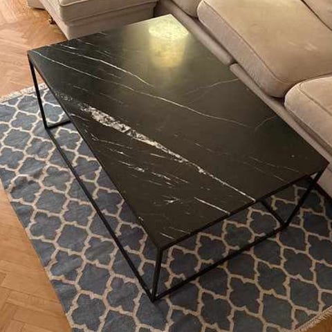 Soffbord med rund marmorskiva och stativ i metall. Bordet har en kombination av vit marmoryta och guldfärgat metallstativ. Passar som sidobord eller mindre soffbord i vardagsrum eller liknande utrymmen.
