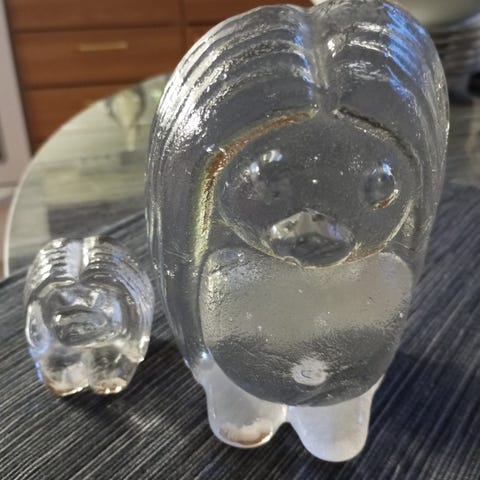 Ca 15 cm höga. 100 kr styck eller 450 för alla fem. En sjätte figur har limmad hals (se bild 2) den säljs för 30 kr