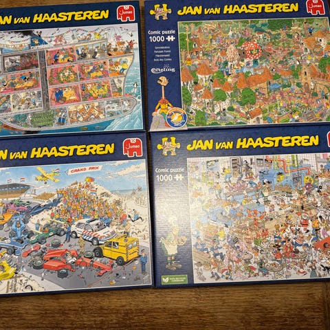 Jan van Haasteren pussel med 1500 bitar. Flera olika motiv finns tillgängliga. 7st olika och 150kr/st. Hämtas på plats