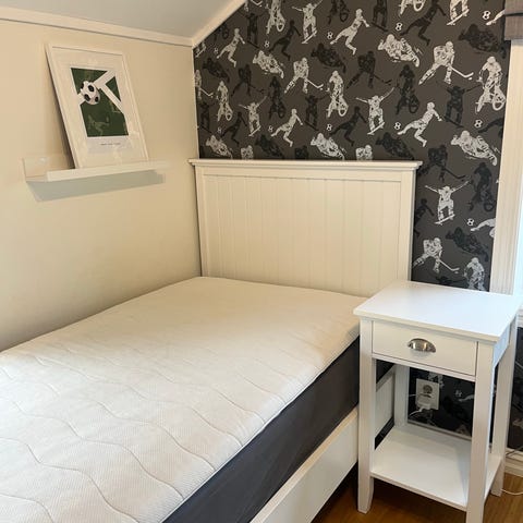 Superfin barnsäng från MIO med en praktisk förvaringslåda under.