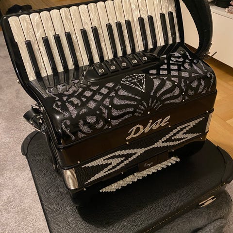 Välkommen och prova bland annat detta dragspel ur sortimentet i butiken och verkstan.