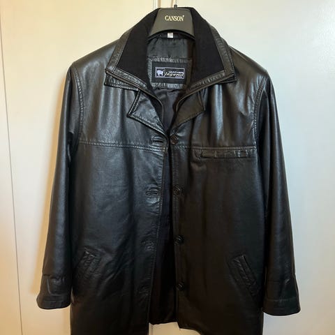 Själva jackan är superfin i skinnet, dock behöver innerfodret på vänster insida längst ner sys ihop på två ställen.
