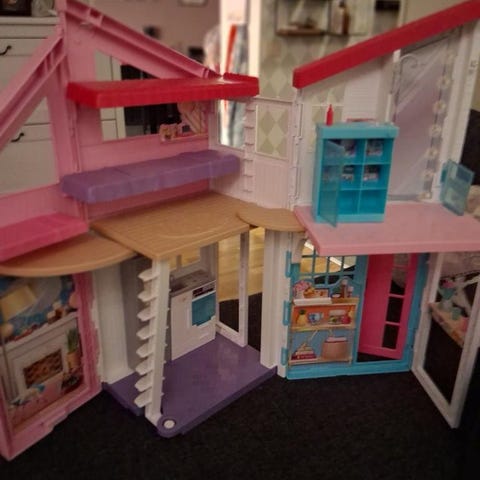 Barbiehus Kidkraft Amelia säljes i använt skick med slitage men med mycket kvar att ge nästa barn.
