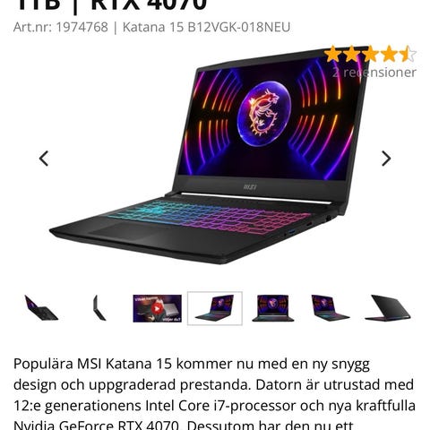 Säljer min MSI Katana 15 B13V. Väldigt välskött laptop som levererar stark prestanda för spel, streaming och arbete. Perfekt för dig som vill ha en kraftfull maskin utan att köpa ny.
