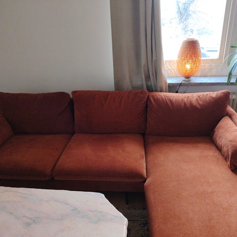 Soffan är i nyskick, sparsamt använd och kommer med en grå, tvättbar dyna.