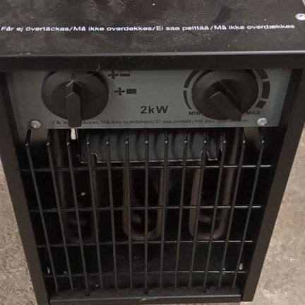 Säljer en byggfläkt/värmefläkt med 9000W i effekt och 400V driftspänning.