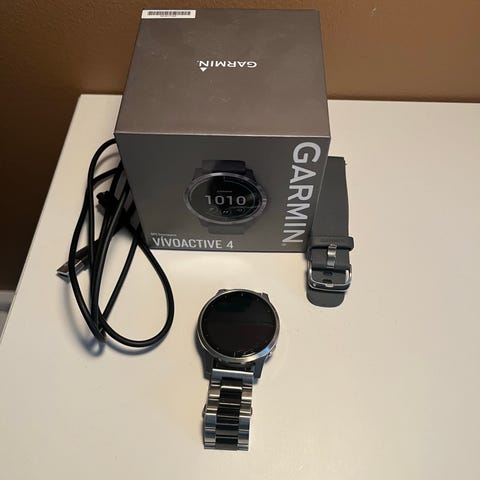 Säljes en Garmin Vivoactive 4s GPS smartwatch (vit/rose gold) för 1000kr.