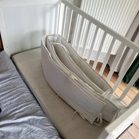 Spjälsäng med madrass och spjälskydd