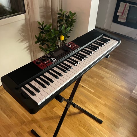 Fint skick, typ ny, inga repor bara haft i vardagsrummet. Den kommer med originalkartongen. Ingår enklare sustainpedal och bluetoothkoppling. Finns i Leksand. Säljes då jag ska övergå till synth.