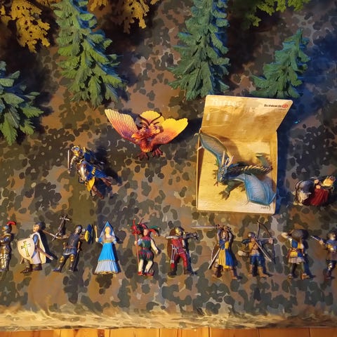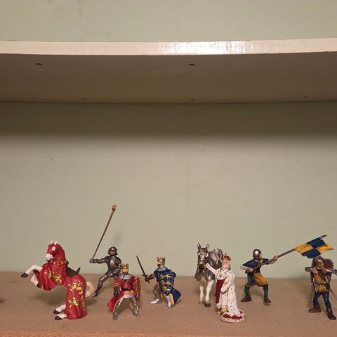 #Blandade mindre figurer riddare med hästar och drake.
