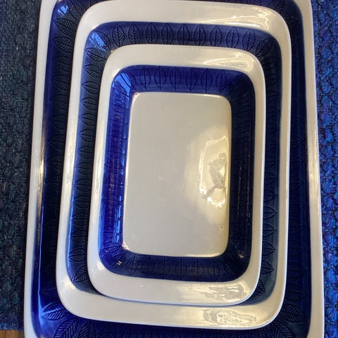 4st uppläggningsfat. Koka blå. Utan nagg. Någon bestickets kan förekomma