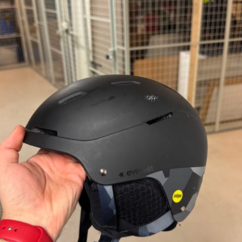 Skidhjälmen passar barn ca 3-5 år och kommer med på köpet om du är intresserad.