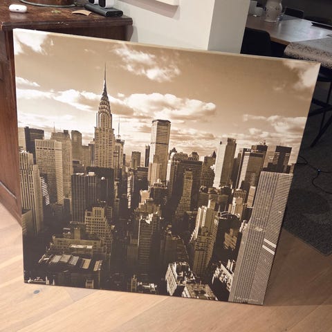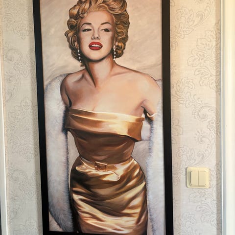 En passande tavla till retrohemmet - nyskick. Format ca 57,5 × 42 cm. Det är canvas utan ram, kan hängas upp som den är. Motivet är Monroe, Elvis, Dean och Brando. Säljes pga byte av inredning. Avhämtning i Solna.