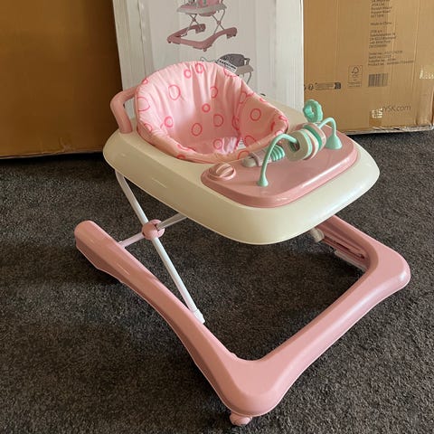 Jollyroom lära-gå-stol i svart och vitt med aktivitetsbord. Använd men i bra skick och allt fungerar på den. Från djur-och rökfritt hem.