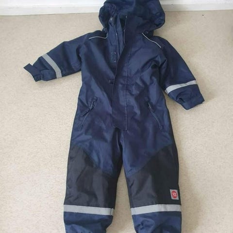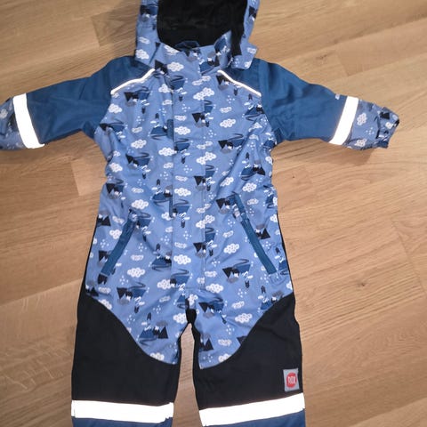 Blå pax overall med reflex både på ben, armar och rygg. Avtagbar huva , dragkjedja fram och på de två fickorna.
