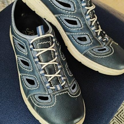 Snygga svart/gråa sneakers med antistressfunktion för maximal flexibilitet och optimal stötdämpning på olika ytor. Memosoft är en mjuk innersula i textil som formar sig efter foten på ett behagligt vis. Rieker TEX-tekniken ger ett omfattande väderskydd från fukt, kyla och vind samtidigt är sneakers andningsaktiva. Slitstark yttersula i gummi med perfekt grepp. Normal/ bred passform. Ytmaterial : syntetisk/ mocka Foder: Textil Storlek: 43
