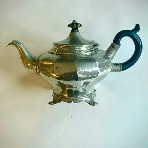 Tennkanna med lock och handtag, metallmaterial. Passar för servering av drycker.