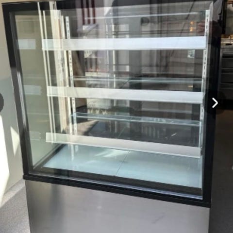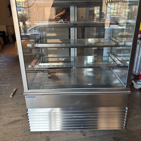 Fin konditorkyl inkl. brickor i olika storlekar samt tårtfat och kupa. Mått på kyl: LxBxH 1 x 0.75 x 1,33 m. Har använts i ett bageri, som nu lagts ner. Vid behov kan frakt ordnas.